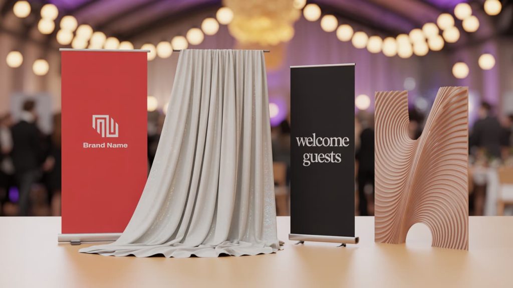 - Pop-Up or Frame Backdrops – Expandable structures with tension fabric or vinyl graphics.