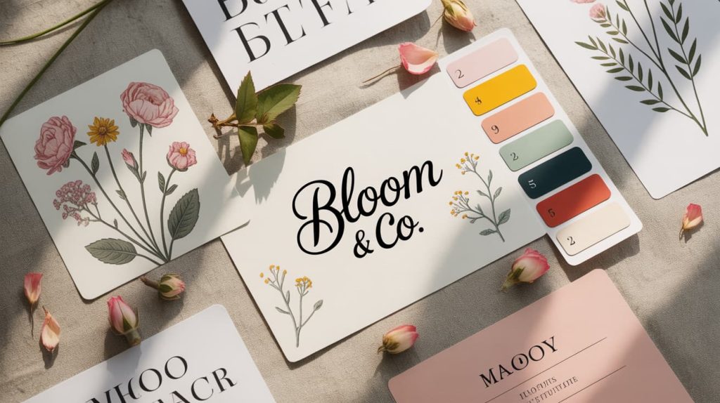 The floral element should complement — not overpower — your brand name. A harmonious layout keeps the logo graceful and versatile.
