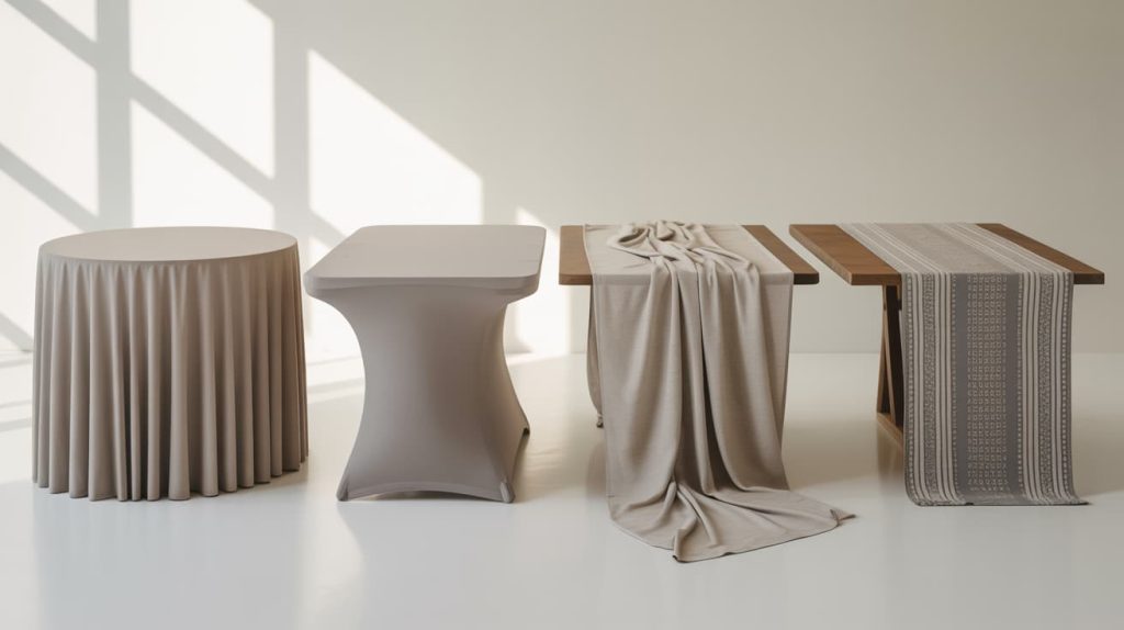 - Stretch Table Covers – Made from stretchy fabric that hugs the table, often wrinkle-free.
